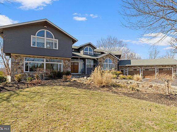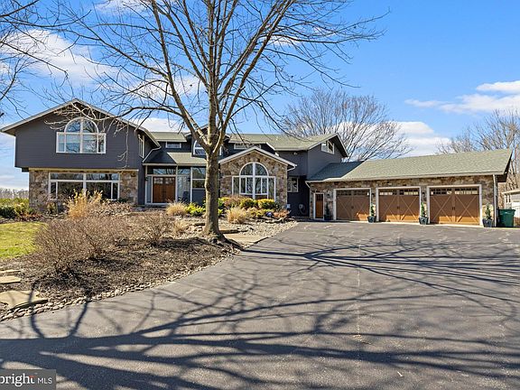 Enter this gated private property for the rare opportunity to own this 5 bedroom, 4+ bath, 7500 sqft master piece of modern mixed with mountain style living on over 11+- acres with an additional 23 acre farm adjacent to the property. This sunny and totally remodeled multi-level home with its state-of-the-art kitchen presenting copper style farmhouse sink and oversized granite will impress the most famous of chefs. Floor-to-ceiling walls of glass, stone fireplace, wide plank flooring, custom banisters, and barn house sliding doors enhance the abundance of upgrades! The owner suite is incredible and resembles a relaxing spa like atmosphere offering a custom glass spa shower with several rain showerheads and sprays. The additional 4 bedrooms offer private baths and lots of closet space, plus views. The lower level offers walk-out living to a terrace, outdoor kitchen, heated pool and views of the pond. There is a custom bar, gym, and a magnificent theater that seats 10! Steps away is your own detached entertainment center with, game room loft, work center and a bonus hunting room with walk-in safe. Currently being used as a pickleball court. Use it as a 6+ car garage, boat storage, ATVs, if need be, along with its current three-car attached garage! The geothermal heating, zoned AC along with its southern exposure affords the owner low utility costs. You must see this incredible home just 10 minutes from Route 55 and 30 minutes to the Philadelphia sports centers!