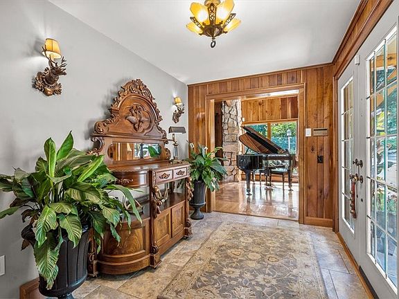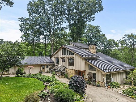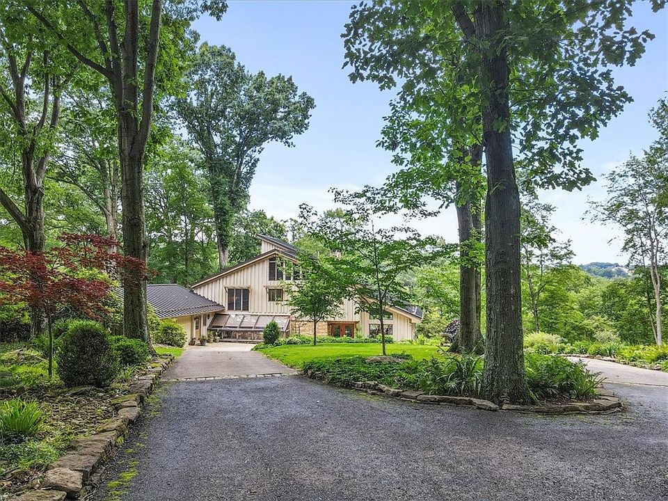 A private gated drive leads to this absolutely stunning 51-acre estate. Enormous 4-6 stall barn with large loft equipped with electric & water, storage sheds, fenced pastures, riding area, 2 miles of wooded trails, pistol range, 3 aerated ponds with firepit & covered pavilion. This magnificent home offers a unique mid-century modern design with rustic accents. Dramatic soaring ceilings, walls of windows through-out the home with breathtaking views, wood beamed ceilings, floor to ceiling stone columns, gorgeous inlaid hardwood floors, stone fireplaces, beautifully renovated Gourmet kitchen with appealing natural cherry cabinetry, leather granite cabinetry, top-of the line appliances& heated floors, Intriguing primary suite with loft & spa-like bath, Spacious bedrooms, updated baths, LL game room, wet bar& mini kit, FP, exercise room 7 walk-out to stone patio, enormous rear deck overlooking the ponds & lush wooded property. Your own private retreat very close to shopping & major roadways