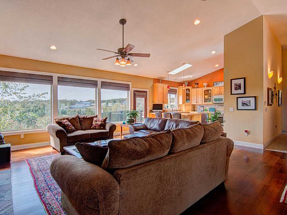 Builder's personal home & you can see attention to detail. From the moment you walk in the front door to large open floor plan, large window provide plenty of natural light adding to the Mountain View. Marbau Malaysian hardwood floors, Travertine tile counters in the kitchen, stainless high end appliances. Master bedroom leads to a large master bath, jetted tub, walk in tile shower, copper sinks & very large master closet. On the lower level you have a full studio apartment for those drop in guest's and extended family. Plenty of storage with a 24 x 24 detached shop and also extended storage space in the large crawl space. All of this on a .50 acre lot in the heart of Branson yet tucked away in quiet subdivision with City Park & Lake Taneycomo private access.