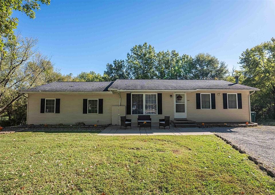Welcome to this spacious 5 bedroom, 2.5 bath ranch on nearly half an acre at the end of a quiet cul-de-sac in Chandler. The main level offers a split-bedroom layout with a large owner’s suite featuring a walk-in closet, private bath, and laundry hookups. Three additional bedrooms and a full bath are located on the opposite side of the home, while a convenient half bath is just off the kitchen. The eat-in kitchen and living room open to a massive back deck, perfect for entertaining or relaxing outdoors. Downstairs, the finished walkout basement includes a second living area with a cozy fireplace, the fifth bedroom, an additional laundry room, and access to a fire pit area—great for evenings by the fire. A detached 2-car garage and storage shed provide extra space for vehicles, hobbies, and storage. This home blends comfort, space, and privacy in a great location.
