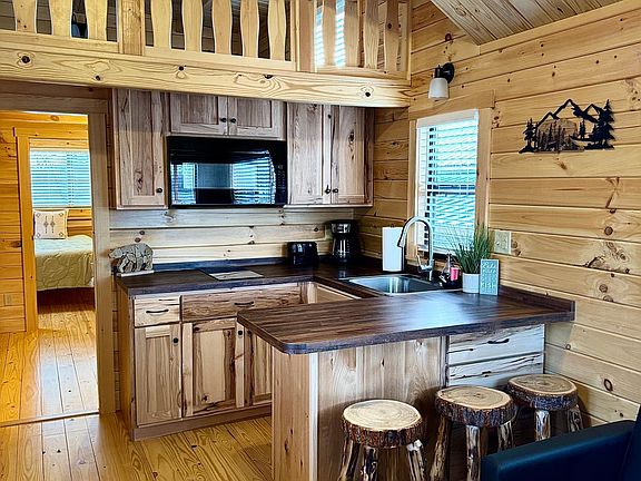 Short-term weekend or weekly rentals are also available. Additional cabins are available, including options with two bedrooms and lofts.