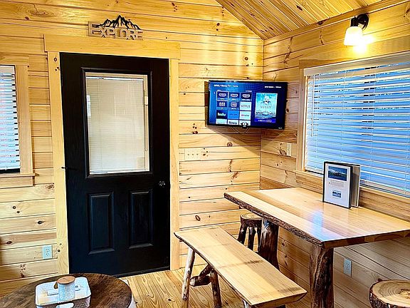 In addition to complimentary Wi-Fi, our cabins come equipped with 32-inch Roku TVs that offer Spectrum cable and access to free streaming channels.