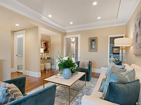 This stunning home has been tastefully renovated while preserving many of its original details. Detached on three sides, the home includes two large outdoor decks and expansive city views. The entry level features a large bedroom, a marble-appointed full bathroom and a family room that opens up to the park-like garden. This main level features a living room/dining room with a gas-converted fireplace and custom lighting fixtures. Home features include hardwood floors, living room with wet bar & wine fridge, custom cabinetry with natural quartzite countertops, large eat-in dining area. Kitchen with stainless steel appliances & five-burner gas stove. The garden was designed by Janet Moyer Landscaping and boasts two expansive decks, a slate walkway, smart irrigation system, landscape lighting, two water features, custom benches and a larger garden shed. One full-sized car garage. This home is not one to be missed!
