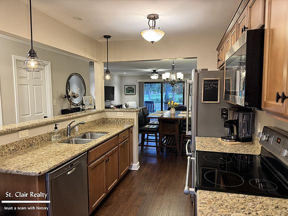 Gorgeous remodeled and well-maintained townhouse style condo offering style and comfort throughout. The kitchen showcases beautiful cabinets, granite countertops, and stainless-steel appliances, while hardwood floors flow seamlessly across the home. All bathrooms have been completely remodeled with modern finishes. The full basement provides extra storage or can be finished for added entertaining space. A key highlight is its premier location directly across from the Marysville Golf Course and just steps from the Marysville River Walk and the St. Clair River. Enjoy breathtaking views from the living room and deck, with the convenience of being close to parks and the downtown shopping area. Association fees include water, sewer, lawn maintenance, trash pick-up and snow removal.