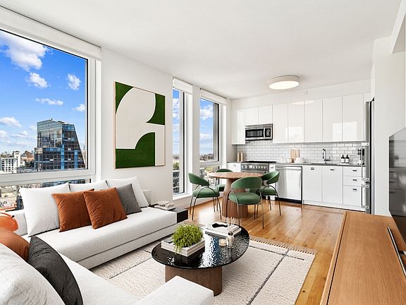The building residences incorporate detailed elements of only the highest quality, including white oak flooring, double-pane windows, and 11 ceilings. At twenty-six stories, it stands taller than most of the surrounding buildings, allowing for uninterrupted views of Manhattan, Queens, and Downtown Brooklyn from almost all residences, each also featuring an elevated level of design and modern conveniences one would expect in a development of this scale.