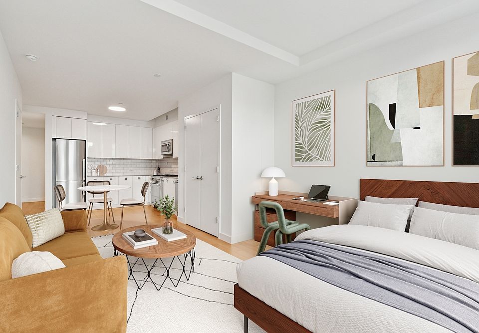 Residences incorporate detailed elements of only the highest quality, including white oak flooring, double pane windows, and 11 ceilings. At twenty-six stories, it stands taller than most of the surrounding buildings, allowing for uninterrupted views of Manhattan, Queens, and Downtown Brooklyn from almost all residences, each also featuring an elevated level of design and modern conveniences one would expect in a development of this scale.