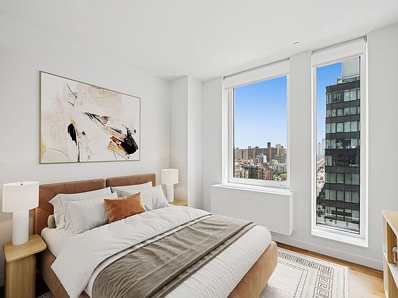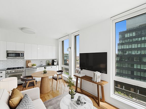 The building incorporates detailed elements of only the highest quality, including white oak flooring, double-pane windows, and 11 ceilings. At twenty-six stories, it stands taller than most of the surrounding buildings, allowing for uninterrupted views of Manhattan, Queens, and Downtown Brooklyn from almost all residences, each also featuring an elevated level of design and modern conveniences one would expect in a development of this scale.