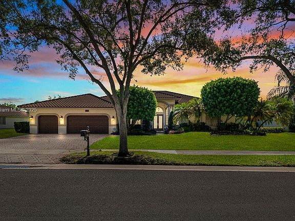 Exquisite single story estate on a .42 acre lot in The Landings w/5-beds (1 used as den/game room) 4.5-baths plus rich custom office with breathtaking ceilings. Chef’s dream kitchen showcases Wolf gas range, Sub-Zero refrigerator, enormous butcher block island, quartzite counters & apron-front sink. True indoor-outdoor living with the most impressive screened-in patio, seamlessly extending the vastness of the home. Overlooking a resort-style salt pool & spa, this expansive retreat boasts a fully equipped summer kitchen perfect for alfresco dining & entertaining. Full hurricane protection w/ accordions, 3 new A/C units, epoxy-finished garage floors, plantation shutters, custom ceiling speakers & desirable triple split-bedroom layout filled with tons of natural light. A-rated Weston Schools!