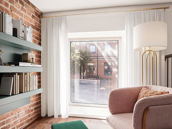 Exposed brick wallBright southern exposuresCentral airSpiral staircaseSpacious bedroomRenovated kitchen