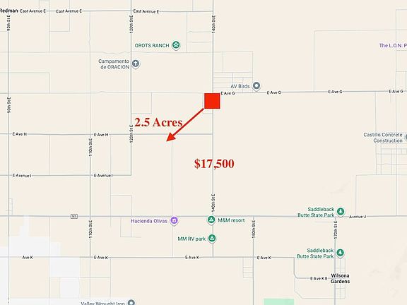 This vacant lot is located near Ave H and 125th East, in Lancaster, CA. This lot is a great opportunity to own your land to develop your perfect home now or for future investment. Located in the High Desert this lot is surrounded by opportunities and some homes and businesses, plus it is surrounded by amazing desert views. Lots is almost 2.5 acres with easy access to paved roads and should have access to power nearby (buyer to verify). Do not delay and inquire on this opportunity today.