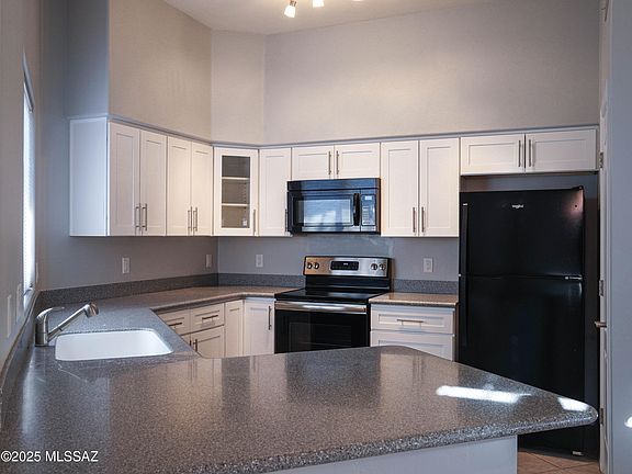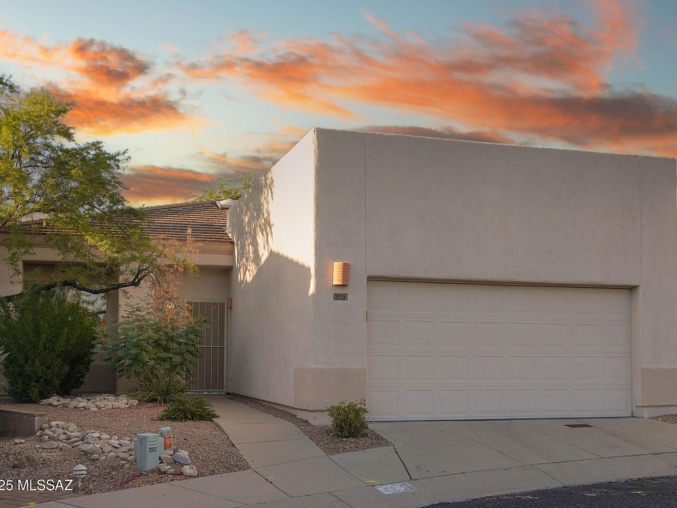 Beautifully maintained A.F. Sterling-built home in the desirable Rancho Lomas community! This immaculate 2-bedroom, 2-bath, 1,233 SF residence offers an open floor plan and two-car garage. Bright kitchen with white shaker-style cabinetry, Corian counters, and stainless steel appliances. A spacious U-shaped layout provides ample storage, bar seating, and a window over the sink, allowing for natural light. Spacious Primary suite offers dual sinks, soaking tub, separate glass shower, and frosted window for natural light and privacy. A split bedroom layout, and tile flooring throughout with carpet in the bedrooms. Private backyard with low-maintenance desert landscaping, shady palm, and cozy patio. Relax and unwind at the sparkling community pool, surrounded by lush landscaping and shaded palms with w/panoramic Catalina Mountain views as your backdrop. Ideally situated on a quiet cul-de-sac, this home boasts one of the largest premium lots in the subdivisionjust minutes to shopping, dining, and the University of Arizona. The HOA covers front yard maintenance, community pool, BBQ, and trash service.