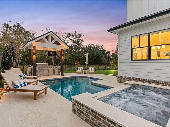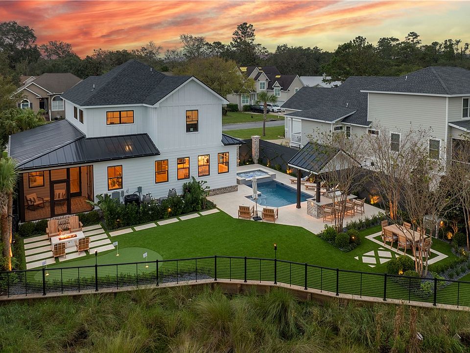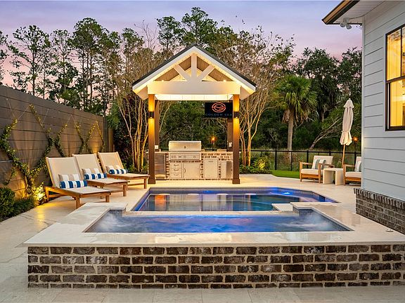 The true show stopping aspect of this home is the resort-style backyard oasis. Overlooking serene marsh views, it’s designed for year-round enjoyment with a heated and chilled pool with spillover spa, outdoor kitchen, putting green, firepit, and screened-in porch—ideal for relaxing or hosting gatherings.