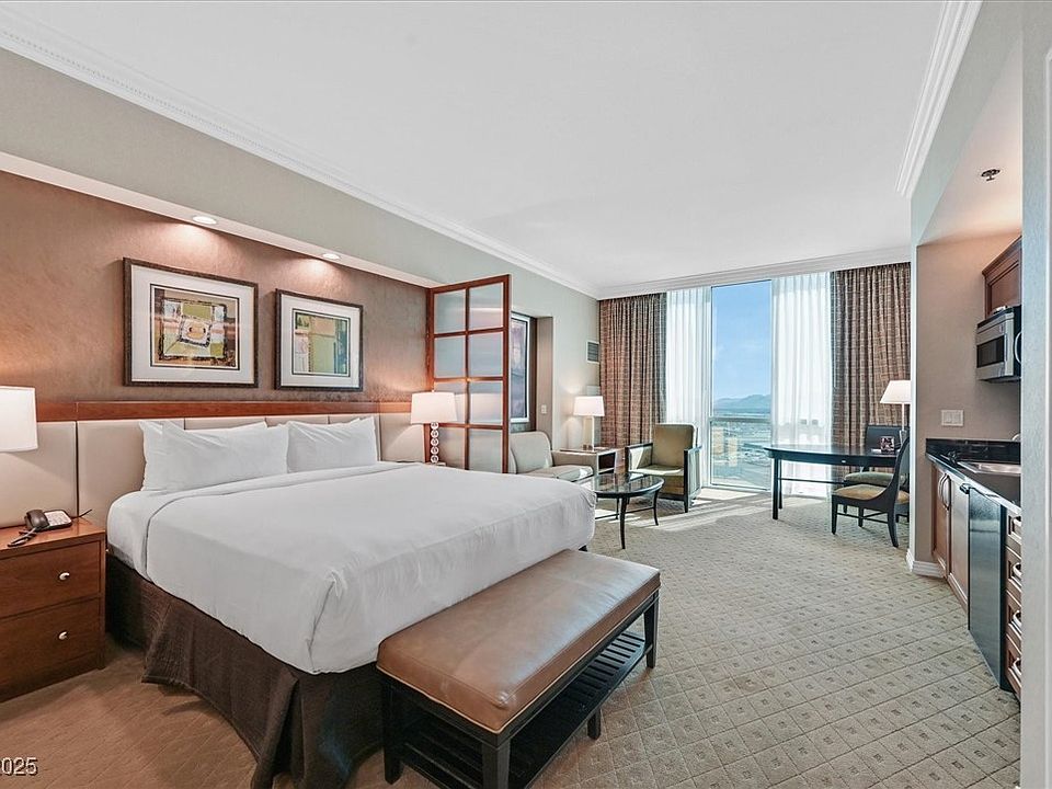 Owner will carry!!!! Welcome to the prestigious MGM Grand Signature Suites! Enjoy stunning sunrises from this fully furnished, AirBNB-approved condo-hotel suite with panoramic views of Topgolf and Wet Republic. Features include a kitchenette with stainless steel appliances, granite counters, built-in entertainment center, and private owner’s cabinet. The spacious bathroom offers a double vanity and Jacuzzi tub. Sleeps 4 comfortably with a plush king bed and sleeper sofa. Enjoy access to MGM Signature’s 3 private heated pools, spas, cabanas, fitness center, lounge with full bar, concierge, valet, and Starbucks. Connected to the MGM Grand, with easy access to shopping, Topgolf, and Wet Republic Ultra Pool!