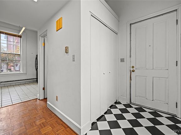 Abundance of natural lightTiled foyerWood-burning fireplaceDramatic palladium windowsIn-unit laundry