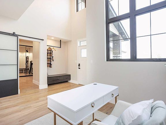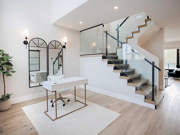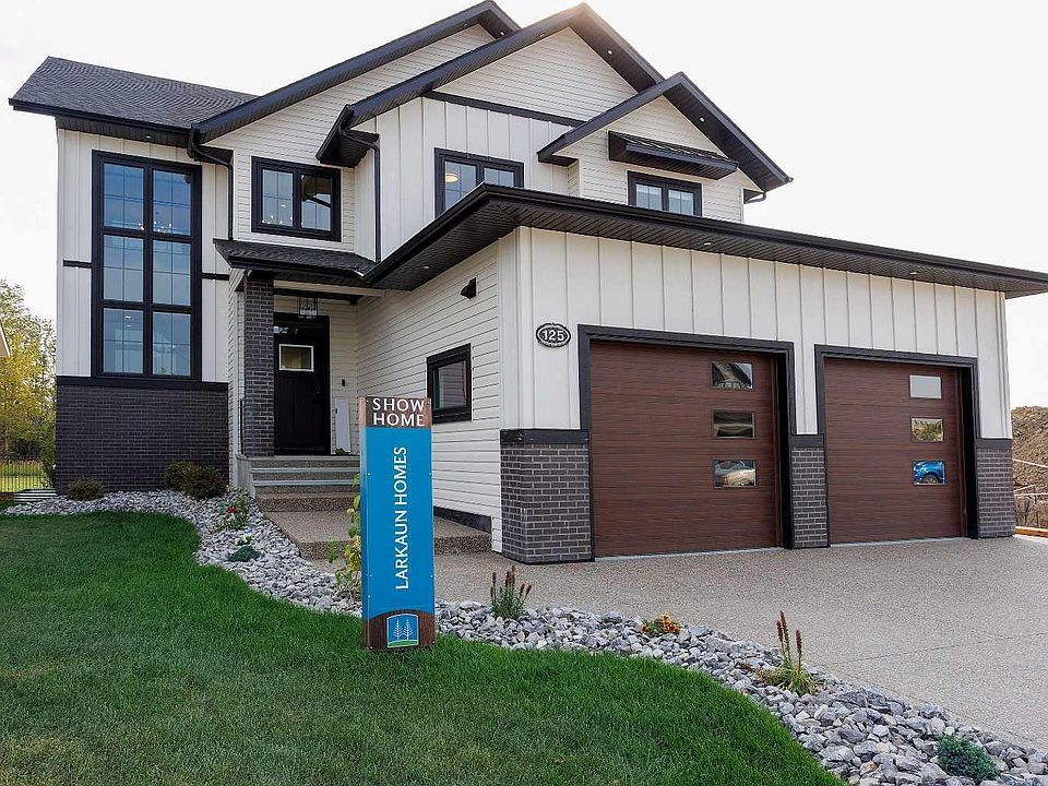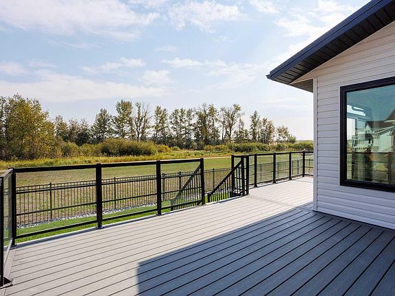 A brand new fully developed Larkaun Homes show home in desirable Evergreen. The curb appeal is accented by the aggregate front driveway & steps, the metal roof accents & vertical board & baton features. The front entryway greets you with towering 18' ceilings in the foyer & main floor office that overlooks the custom staircase with solid wood treads, two tone risers & custom glass guard rails. Ceiling height, soft close kitchen cabinets are accented by a massive island with an eating bar, full chevron tile backsplash, a Franke peak undermount granite bowl sink, a built in fridge/freezer combo, a gas stove with a pot filler, wine storage, a pantry style cabinet with pullouts, a custom wood hood fan & quartz countertops. Walk through the butler's pantry with a prep sink & beverage centre to the back entryway that has mirrored sliding closet doors, a bench seat & built in cabinetry for storage. The powder room has decorative wallpaper, a furniture style vanity accented by a hammered stainless steel under mount sink. The eating area has patio doors to the 14'x8' + 16'x14' composite rear deck. Relax in the living room next to the british fires forest 48" electric fireplace featuring matte black quartz slab surround. Follow the stunning custom staircase up to the bonus room that adjoins to the desk stations with a custom welded wall with glass inserts that overlook the main floor. The king sized primary bedroom has a large window that overlooks the back path & trees, a fan, reading lights on each side of the bed & an oversized walk in custom closet. The gorgeous 5 piece ensuite features heated tiled floors, a 60"x36" curbless walk in tile shower with a built in storage niche, dual heads including a rain head & a sliding hand shower, a freestanding tub below the picture window, double sinks, a makeup counter with an LED mirror, and a water closet with a window. There are two additional bedrooms, a 4 piece bathroom & a laundry room (smart drain under the washing machine) with builtins including baskets & a folding counter. The fully finished basement has operational in floor heat with a family room featuring a sports bar (includes a built-in ice maker & beverage centre), a 4th bedroom, an exercise room with full glass wall and a 4 pc bathroom. The fully landscaped yard backs onto a walking path & treed area. The oversized garage has premium flake epoxy floors, a gas heater, floor drains, a smart car plug in & a rear garage shed with backyard access through the 7'x7' overhead door. Features of the home include: Central air conditioning, basement & ensuite has in floor heat, window blinds, luxury vinyl plank flooring, high quality carpet with an 8lb underlay, solar panel ready, Lutron smart home system connects to the power blinds, pot lights and Sonos system, video doorbell and security cameras, Sonos speaker in the kitchen, living room and sun deck, central vac with floor sweeps & more! Evergreen is an HOA and the fees are $100/year at this time.
