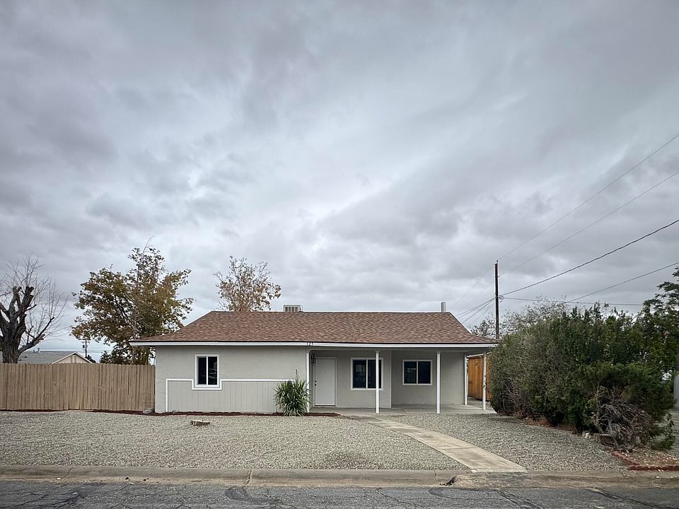 This charming home, set in a cottage-like environment, features 3 bedrooms and 1 bathroom. It has been updated with new laminate flooring, an electric stove and oven, a new sink and countertops in the kitchen, and a tankless hot water heater. The home boasts all-new windows, while the bathroom has a new vanity and flooring. In the family room, there's a wood-burning stove to keep you warm on those cold winter mornings. Situated on a large corner lot, this property includes RV parking and a nice storage shed. The backyard features a covered patio and a workshop. Additionally, the exterior of the home has been freshly painted.