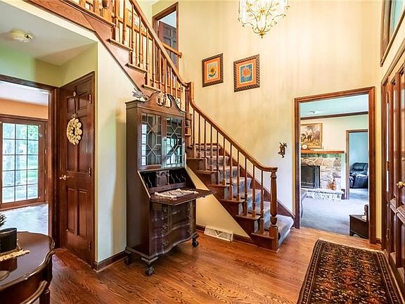 Set on 2.7 level acres of picturesque, peaceful , private property, all with easy access to Sewickley Village, Cranberry, Pittsburgh & the airport. A beautiful open staircase greets you as you enter through the solid mahogany door. The open layout on the first floor is great for today's family and also entertaining friends. A Beautiful stone fireplace with gas log starter highlights the family room. The fourth bedroom is on the ground level and could also be used as an office. The master suite on the second level features a vaulted ceiling and another log burning fireplace and a beautiful en suite bathroom. There are two more bedrooms and a full bath on this level. There is a finished basement, which has a game room, workshop & storage rooms. New air conditioning 2016, furnace 2017, exterior painted 2019.