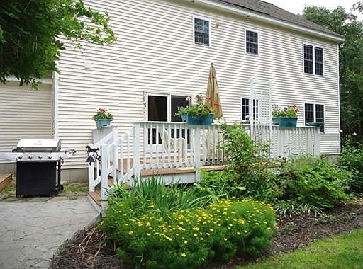 Custom built colonial. 4 bedroom design, with 2 bedrooms combined to create a large master bedroom suite. Lots of light in this home due to oversized windows throughout. Huge Gourmet kitchen, center island, quartz counters, built in oven, lots of cabinets. Formal dining room with ceramic flooring, formal living room with hardwood flooring, Open Foyer with 2 coat closets. Spacious family room with easy to care for ceramic flooring. Half bath and laundry room on first floor. Oversized garage with room for storage and workshop area. 2 full bathrooms on second floor with double sinks, jetted tub in master bath. The yard is private.. Level area with playground equipment for kids. Room for gardens, Storage shed has electricity and is heated by a woodstove. Large deck off the kitchen which leads to a patio, another deck and patio with a covered arbor. Just beautiful.