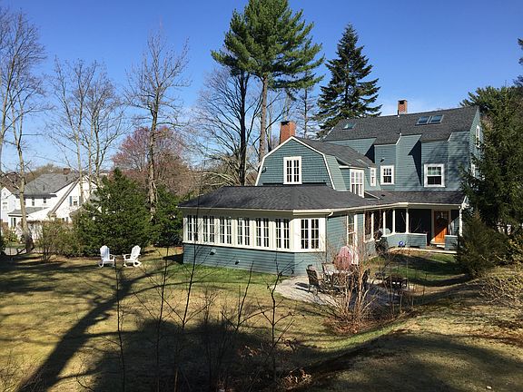Winchester at its best. Restored and improved turn of the century Dutch Gambrel Colonial 3,900 sqf home, located on a large flat 19,000 sqf lot with a large back yard. Only a short walk to the Fells, Muraco school, parks, playground, and hospital. Recently underwent a complete renovation, including a large open kitchen addition, a reconfigured floor plan, finished attic, new electrical/plumbing/central AC/heat pump systems, new windows, roof and insulation, original floor restoration. As much as possible of the original detail was kept, including original fireplaces, double stairs, and clawfoot tubs. A large and modern chef's kitchen, perfect for cooking and entertaining. Sunny floor plan with original custom woodwork and french doors. The site also includes a double detached carport, a kid's playhouse, and a gazebo. Large basement with high ceilings for storage. The first floor features large kitchen with pantry, living room, wallpapered dining room with custom wood cabinets, formal room with baby grand piano, mud room, two wood-burning fireplaces, and powder room. Two separate staircases lead to the second floor, which includes a large family/playroom, au pair suite with full bathroom, guest room, two kids' rooms, another full bathroom, and centrally located washer/dryer. The third floor attic is used as a master bedroom and has several skylights, walk-in closet, gas fireplace, and a modern full bathroom with jacuzzi tub. There is also another small bedroom, currently used as an office. The home was designed and renovated by current owners who are regretfully moving due to work relocation. To schedule a showing, please contact owner at 617-800-6125 or email via the contact form. Buyer's agents welcome.