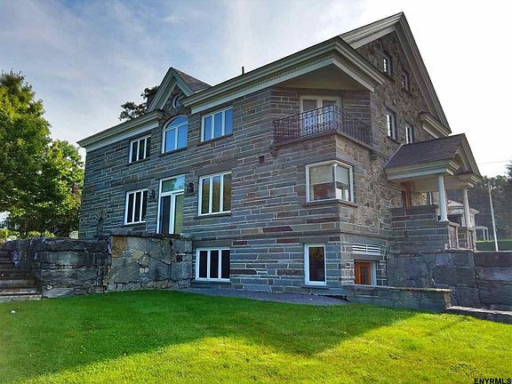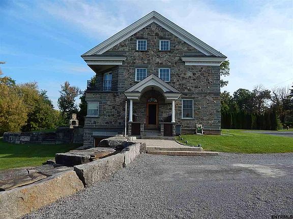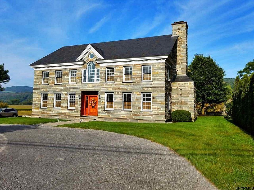 CASTELNUOVO or New Castle is a place of dreams. At first glance this luxury home exudes quality and craftsmanship. Stone masons used local limestone, bluestone & imported Welsh Slate to create a timeless work of art. Relax inside the Inglenook fireplace, enjoying a cocktail from the bar or a meal prepared in the nearby true gourmet kitchen.The main living area leads to an amazing patio with stone fireplace & expansive views of the bucolic Schoharie Valley and mountains. Did I say this would be an ideal inn?