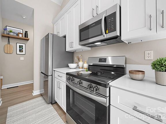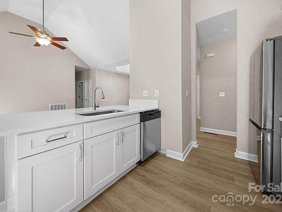 Discover this beautifully updated 3-bedroom, 2-bath ranch on a spacious 1.17-acre lot in desirable Troutman. With 1,424 sq. ft. of stylish living space, this home offers an open floor plan with vaulted ceilings—perfect for entertaining family and friends. The split-bedroom layout provides privacy, while the fully renovated kitchen features new cabinetry, stainless steel appliances, modern lighting, and sleek quartz countertops. Both bathrooms have been updated with new cabinets, lighting and quartz vanities. Luxury vinyl plank flooring adds warmth, durability, and contemporary appeal throughout the home. Brand new roof and HVAC mean this should be low maintenance for years. Step outside to a large deck overlooking a peaceful, private backyard—ideal for relaxing or hosting gatherings. Enjoy the freedom of no HOA fees and the convenience of being close to shopping, Lake Norman State Park, and I-77. Move-in ready and beautifully finished, this home perfectly blends comfort, style, and location. Some Photos virtually staged.