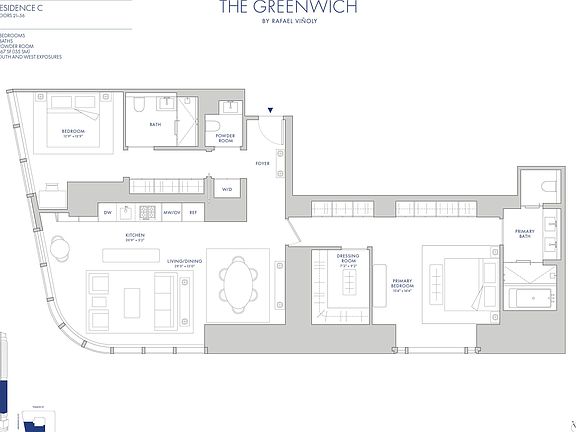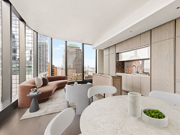 Residence 37C at The Greenwich Condominium by Rafael Vinoly, a two-bedroom, two-and-a-half-bathroom home showcasing southern and western exposures with panoramic views. Immerse yourself in the breathtaking views visible through floor-to-ceiling windows, and ceiling heights that extend over 10 feet, creating a dynamic canvas of the city skyline and waterfront. At 1,668 square feet of living space, this home offers meticulously designed living areas, featuring interior finishes by the esteemed design firm, MAWD.