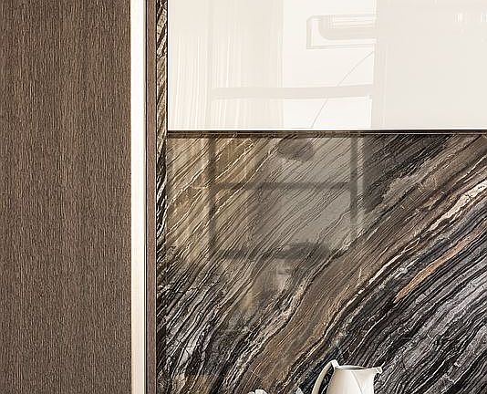 The formal entry foyer opens to the gracious living space, with 6" wide white oak flooring in dark brown finish. The custom designed kitchen features a full suite of Miele appliances, a vented hood, polished nickel fixtures, cabinets in walnut finish, and Ombra di Caravaggio marble countertops and backsplash.