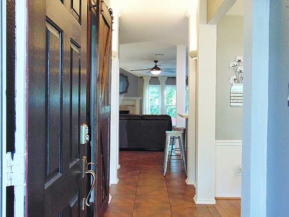 Warm yet Simply Full of Charm. Gorgeous landscaping, deck, no backyard neighbors, and mature trees! Front door features a glass storm door, tiled interior entry opens to the formal dining room on the right, which has high ceilings. On the left of the entry is the flex room, which could be used as a formal living or a study and has farm sliding doors. The kitchen has a breakfast bar, tile back splash, Stainless Steel Appliances, kitchen is open to the family room, which features ceiling fan, art niche and wood-burning fireplace with mantle. Large master bedroom double door entry, ceiling fan and walk-in closet. Farm sliding doors lead to the master bath, which has dual sinks, garden tub, and separate shower. Secondary bedrooms feature ceiling fans. Back yard includes covered patio, wooden deck, and has a fire pit. Walls and Counter tops are neutral colors to accommodate any style of decorating. Perfect location on a quiet street. This could be your FOREVER HOME schedule a showing today.