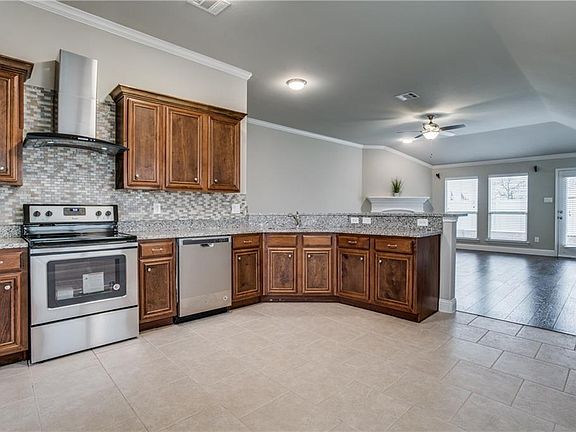 Priced to Sell!! Beautifully updated Red Oak home with 4 bedrooms 2 full baths plus 2 car garage. Updates include granite counters, stainless steel appliance, freshly painted interior, mini blinds throughout, laminate floors, carpet in bedrooms plus more! Walk in to 10 ft ceilings, formal dining area, cozy up in front of fireplace in living area, 13 x 10 master bath with separate shower, double vanities, larger walk in closet with built in shelf, ceiling fans in all rooms and backyard is perfect for entertaining, roast marshmallows with built in fire pit. Have a dog, there is also a brick dog house. Buyer and Buyers agent to verify schools and measurements.