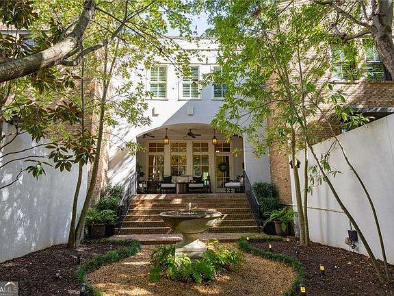 This one-of-a-kind home features a gated courtyard with Savannah charm, beautiful water fountain illuminated with landscape lighting, and a covered porch for romantic evenings. Inside, enjoy a chef's kitchen with custom cabinetry, 6-burner stove, breakfast bar, and shiplap accents. The living room offers a fireplace with custom mantle and built-ins, while the dining room boasts floor-to-ceiling windows overlooking the courtyard. Upstairs: a luxurious master suite with spa bath, two bedrooms with full baths, and laundry. Terrace level includes a bedroom or office, full bath, large storage room, and second laundry making it perfect for multigenerational living. Loaded with upgrades: California Closets in every room, hardwood floors, custom stair runners, and a garage with storage, workbench, granite floors, and pre-wired for EV charging. There is plenty of storage throughout the home. Walk to Downtown Woodstock for dining, boutique shopping, live music at Northside Hospital Amphitheatre, or enjoying your favorite beverage at Starbucks or Reformation Brewery. Enjoy Greenprints Trail for walking, biking, and running, and ice skating in Adair Park. Community amenities: large gated pool, dog-friendly spaces, and a park and nature trail along the creek. Don't miss this rare opportunity-schedule your private tour today!