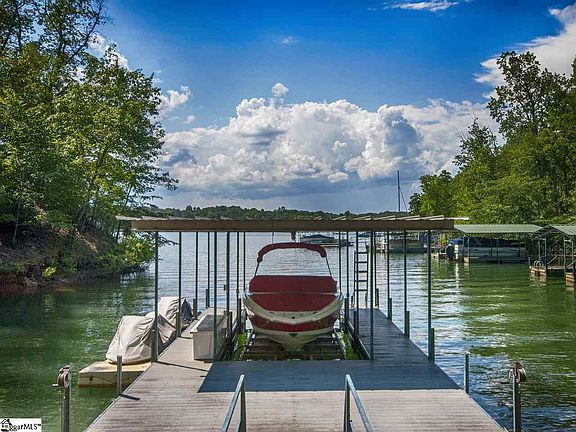 What a find! 5 bedroom, 3 bath home on 1.74 acre lot on beautiful Lake Hartwell. Deep water, private cove, dock with boat lift and power, water, and decorative riprap stone wall. Dock has dowles in the jet ski lift. Many updates including new HVAC in 2013 & 2014, and new roof in 2018. Dynamic home with open floor plan, 2 kitchen areas for those holiday gatherings and large recreation room with wet bar. Four decks or patio areas for outdoor entertaining, some are covered. Master bedroom suite with large sitting area and huge bath with his/her vanities, whirlpool tub, separate shower and closet for stackable washer/dryer and storage galore! Home office next to master has 2 closets and would make a great nursery. Large workshop in garage and storage shed with electricity. Spectrum internet and Direct TV available. Too many extras to mention on this fantastic property! Only 2 minutes off of I85!