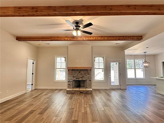 If you're looking for some acreage and privacy, this is your dream property! This new home is situated on 4.9 acres and nearing completion. Large central living room with split bedroom floor plan. Open kitchen with a Quartz-topped island with seating, sunny breakfast room, lots of counter space and stainless steel appliances. Inviting primary suite includes a spacious bath with separate closets, Quartz double vanities, a soaking tub and separate shower. Three additional bedrooms complete the living spaces in this one-level home. Rear covered porch just off the kitchen. LVP flooring, Quartz countertops and matte black lighting & plumbing fixtures throughout. All electric home with blown insulation is energy efficient. One-year termite bond included. Plans and specs subject to change without notice at builder's discretion.