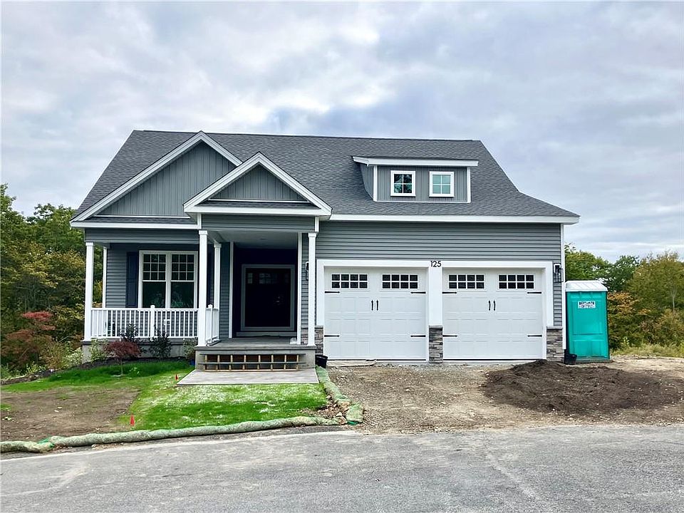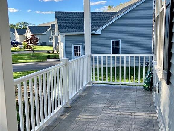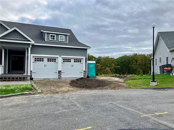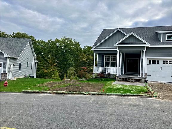 Take advantage of this rare opportunity to own this Beautiful Single Family New Construction 3 bedroom, 2 bathroom Single Level Ranch house nestled in a quiet, already established 55+ community. This New home has a gorgeous modern kitchen with spectrum quartz, natural gas slide in stove, 48" cabinets, dining area, luxury 9.5" hardwood flooring, gas fireplace, spacious living room, large master bedroom with cathedral ceilings, master bathroom with tiled shower, rain head, smart bidet toilets, walk in closet, and walks out to a large covered trek deck overlooking the woods for plenty of privacy, oversized 2 car garage, full walk-out basement already roughed in for an additional 1-2 bedroom, bathroom & kitchen suite for multigenerational living option or for just additional living space with its own 14' patio leading out to a soon to be nicely landscaped private 13,500 sqft yard that has an irrigation system. Water, Sewer, landscaping & Snow removal are all included in the fee with town trash & recycling. This community consists of only 27 total units. This stand alone house is at the end of the cul-de-sac on a private road. Easy access on and off the highway and conveniently located near shopping and entertainment. Just 30 days from Completion. Must see.