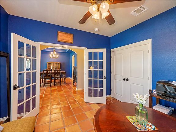 Immaculately kept, Spanish-inspired, custom home with 3 beds, 2 baths, formal dining, and study. Several upgrades include Saltillo tile, stained barrel ceilings, huge storage closet off study, built-in wine rack, skylights, laundry room w/cabinets and sink, outlets in eaves of the exterior, electric fireplace, custom-built mantle, rock accent wall, built-in dog door, 8' jetted tub, large picture windows and a huge pantry! French doors lead to a covered patio overlooking the spacious back yard.Restrictions: Yes Sprinkler Sys:Yes