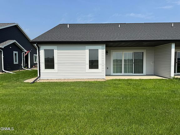 This ONE LEVEL townhome in South Bismarck boasts 1,296 sq ft, 2 Bedrooms, 2 Bathrooms, and a 3 Stall Garage!! Enter inside and be greeted by an open-concept layout, with a 10' Ceiling that seamlessly blends the kitchen, dining and living room. The kitchen features Quartz Countertops, Stainless Steel Appliances and a Large Island. Vinyl Plank flooring is throughout the home with Carpet in the bedrooms and closets. The 3 panel patio door in the living room brings in an abundance of natural light and takes you to the covered patio. The Primary Bedroom has a coffered ceiling and the ensuite has a large Walk-In Closet and a 5' Walk-in Shower. On the other side of the home is a Full Bathroom with a tall linen cabinet for extra storage and a Second Bedroom. Down the hall is the mudroom with a coat closet, separate Laundry Room with shelving and the Mechanical Room. The 3 Stall Garage is Heated, with Hot/Cold Water and a Floor Drain. Call your Favorite Realtor today to ''Address Your Future''!