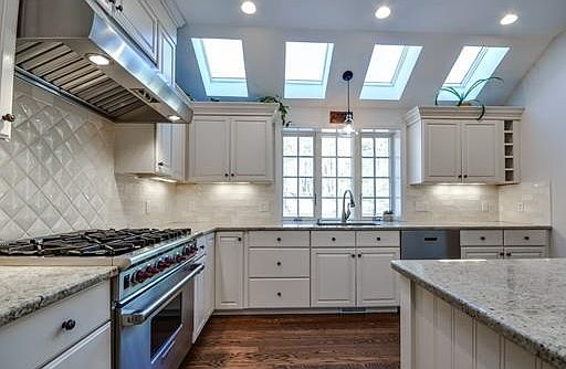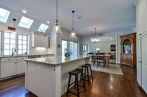 - Kit Dscrp: Pantry, Flooring - Hardwood, Deck - Exterior, Skylight, Breakfast Bar / Nook, Kitchen Island, Recessed Lighting, Exterior Access