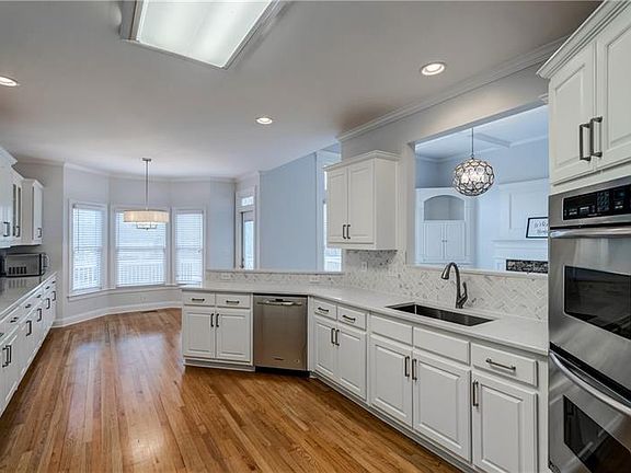 Recently Remodeled Lakefront Home features lovely lake views. Newly updated kitchen with white cabinets, quartz counters and tile backsplash. This desirable craftsman home built by Hedgewood is a certified energy efficient earthcraft home. It offers a master on the main, elevator, hardwood flooring, updated light fixtures, new carpet on the second and terrace level, new interior and exterior paint along with an epoxy garage floor. The expansive custom deck and stone patio was built by Archadeck.