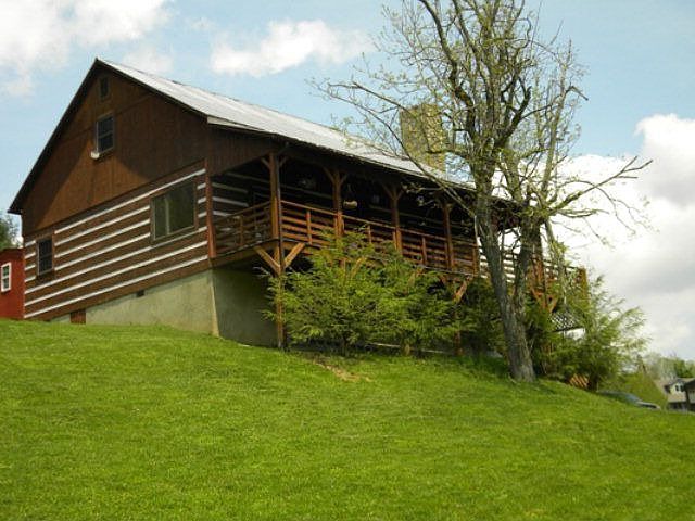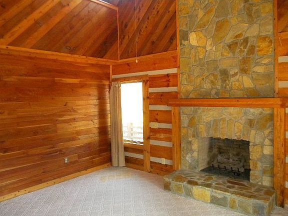 Nice cabin in a peaceful cabin community. Vaulted ceiling with large stone fireplace. Covered deck overlooking pond with mountain view. Great long or short term rental.