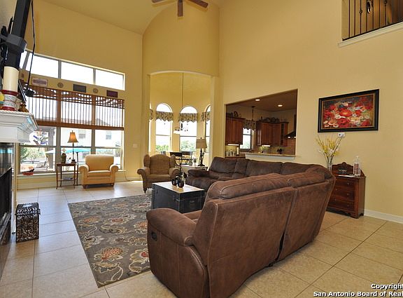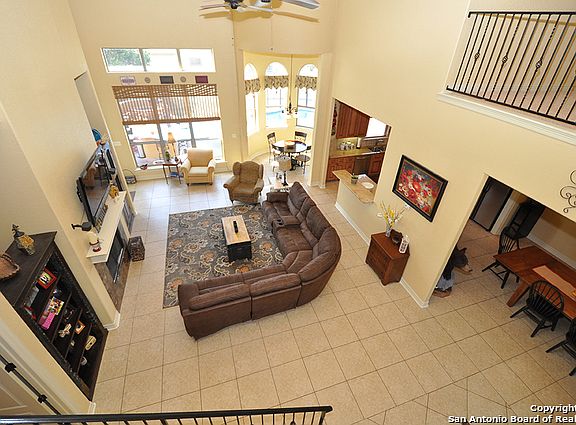 Spring Branch Beautiful Hill Country Home! Sits on over an acre and offer nearly 3200 sf. This lovely 4 bedroom, 3.5 bath features open concept living with soaring ceilings and designer tile in all living areas and wet areas.Kitchen features gas cook top, granite counters, and custom cabinetry. Master retreat down features a huge master bath w/garden tub and his and hers walk in closets. Back yard paradise features fencing, covered outdoor kitchen, living area, and lovely lagoon pool. Smithson Valley ISD!