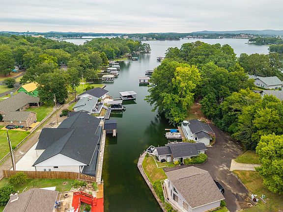 You can’t get closer to the water than this! Follow the drive down the hill to uncover this hidden gem—a peaceful cottage tucked away as the perfect lakefront retreat. This one-level townhome is located directly on the water, with a personal boat slip just steps from the back door. Cast your line or feed the fish right off the expansive back deck, perfect for entertaining friends and soaking up the sunshine. Inside, the home features an airy, open floor plan with 2 bedrooms and 2 baths, stainless appliances, and abundant natural light throughout. Fully furnished and fully equipped, this is truly a turnkey opportunity; and the property is located outside of city limits, allowing nightly rentals with no permit required. Ample parking, privacy, low POA dues, and a quiet cove location just off the main channel make this an ideal lake retreat or investment property.