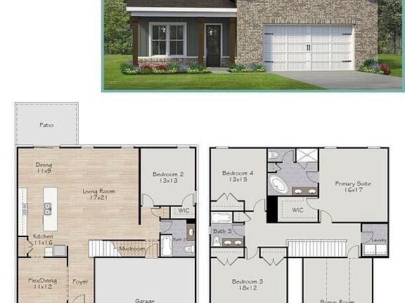 One of Farmstead's Newest Floor Plan......The Ash features a contemporary, open floor plan with plenty of space for entertaining or bringing the family together. The large family room and breakfast nook are open to each other, centered around a dreamy kitchen with quartz countertops and 10-foot island. The spacious flex room off the kitchen is perfect as a dedicated dining room or a home office. On the main level is the first large bedroom with its own full bathroom, just off of the living area. Two additional bedrooms await upstairs, sharing a double vanity full bathroom. The laundry room is convenient to the Primary Suite, and the sky's the limit for a large bonus space you can use for an office, recreation or entertainment. You'll never tire of indulging in your spacious Primary Suite, complete with a luxurious bathroom with a freestanding soaking tub and a huge walk-in closet. The house has an extended covered back patio and a bump in the garage! Call today for a showing! Several plans available in this subdivision-