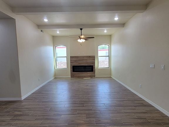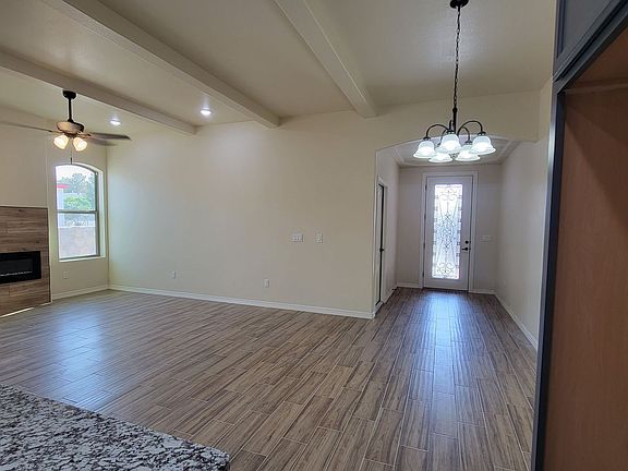 Welcome to this beautiful 3-bedroom, 2-bath home in the heart of Sunland Park, NM. Step inside to discover a thoughtfully designed layout featuring stunning ceramic flooring and a cozy wood beam ceiling that enhances the charm of the living space. The spacious living room boasts a fireplace, perfect for cool desert evenings. The kitchen is a cook's dream, with granite countertops, sleek stainless steel appliances, and ample counter space. A convenient utility room with a wash station adds extra functionality. Enjoy the comfort of refrigerated A/C and the security of a double car garage. This home is walking distance to the city park, making outdoor activities easily accessible. Perfect for those who value both style and convenience!