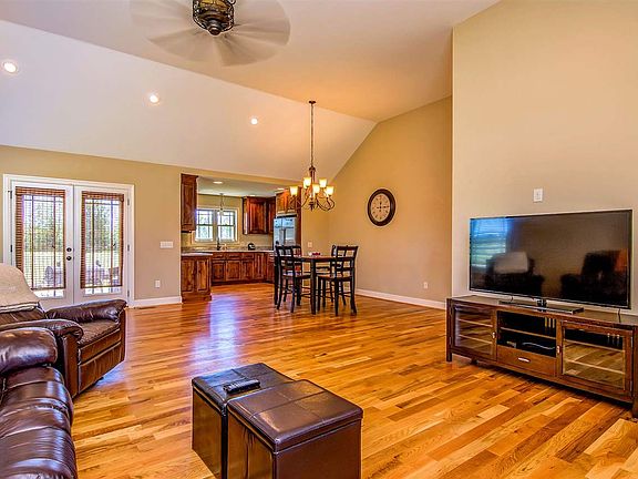 100% USDA Financing Available! No HOA and on over Half Acre! Fall in love with this incredible home as soon as you step onto the rocking chair front porch. Step through the beautiful glass paned front door and feel instantly welcome in the great room with elevated ceilings and gorgeous hardwood floors. The open floor plan is perfect for get togethers with friends and family. Head into the kitchen to see the gorgeous custom Raised Panel Cabinets, Granite countertops, and Stainless steel appliances. Step out the back door and onto the Covered Rear Porch and look out into your large back yard. The backyard is partially fenced for your pets or kids, and the property extends well beyond the fence all the way to the tree line! You will love grilling out and enjoying beautiful summer nights and weekends with all your friends and family with the relaxing Firepit. Head back inside to check out the 2 bedrooms and bathroom with a tub/shower combo, featuring the same beautiful cabinets and granite countertops as the kitchen. Feel your stress disappear upon entering the beautiful master bedroom with trey ceiling and crown molding. En suite features same cabinets and granite countertops as kitchen, double sink vanity, beautiful tile flooring, garden tub and separate shower. This home will not last long, make your offer today!