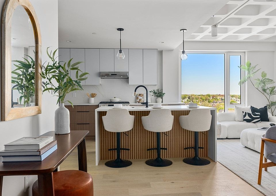 Welcome to the Belmont in Somerville's Spring Hill! This stylish 2BD, 2BA residence spans 1,065 square feet and features stunning floor-to-ceiling windows that offer abundant natural light. Inside, you'll find warm luxury finishes, perfect for entertaining and daily living. The modern kitchen boasts high-end Bosch stainless steel appliances and elegant cabinetry, seamlessly flowing into the spacious living area. Relax on your private deck, ideal for morning coffee or evening unwinding. At the Belmont the you will enjoy the convenience of private parking, elevator access & a chic lobby with space to relax in front of the fireplace or use the co-working space. Additional features include storage units for purchase and a lush common yard for gatherings. With easy access to Somerville's trendy bars, restaurants, cafes, and bike paths, you'll love the vibrant community. Plus, quick connections to Cambridge and downtown Boston keep you close the city's best amenities!