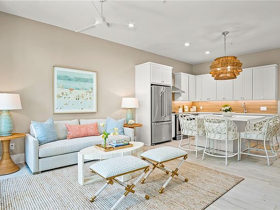 "Beach Nest" is a rare, 1-bedroom condo, recently completed and sold furnished at Cinnamon Shore North, showcasing designer style in a prime location! This thoughtfully designed 2nd-floor retreat overlooks Market Street and the lively Town Center. Soft blush and sand tones flow through the inviting living area, where cozy seating and large windows bathe the space in natural light. The adjacent kitchen shines with island seating, stainless appliances, crisp white cabinetry, and a wood-slat tile backsplash. A luxe king bedroom offers serene décor and an ensuite bathroom with a shower/tub combo, perfect for quick rinses or long, relaxing soaks. Constructed of Hebel AAC masonry and finished with curated interiors, "Beach Nest" combines the comfort of home with vacation-ready charm. Host cocktails on your streetside balcony or wander to the beach at sundown, the simple life at Cinnamon Shore never disappoints. Resort-style amenities abound: 1st-floor boutiques, on-site dining, lavish pools, scenic lakes, fire pits, fitness centers, holiday entertainment, and more. The condo has only been in rentals since May and has already generated $31K in 2025 gross rental income. HOA Dues: $568.41