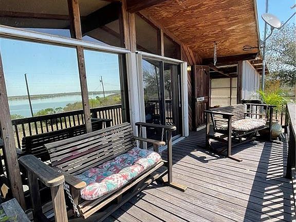 PRICE REDUCTION!!!! SCHEDULE YOUR SHOWING TODAY!!! This property has the most calming effect on you! sit on this wonderful patio with a cool breeze and overlook the lake! The extra lot makes it easy to add a shop or a mother in laws suite or guest home. This great slice of Lake Corpus Christi won't last long, seller has added a lot of new amenities to this home. New Two car carport with patio attached to the home and deck lights wrap around part of the home, Water well pump replaced last year. Enter the new front door to an open concept airy Kitchen/Living room, kitchen has new appliances, vaulted ceilings with Beams and woodturning fireplace only used a few times, new flooring, new water heater 2022, a/c improvements. There is about a 800 sq foot addition to the home that is finished, it served as an entertaining room... you could add a pool table or make another Bedroom, also home has a metal roof.This home has charm and well maintained. WHAT ARE YOU WAITING FOR???