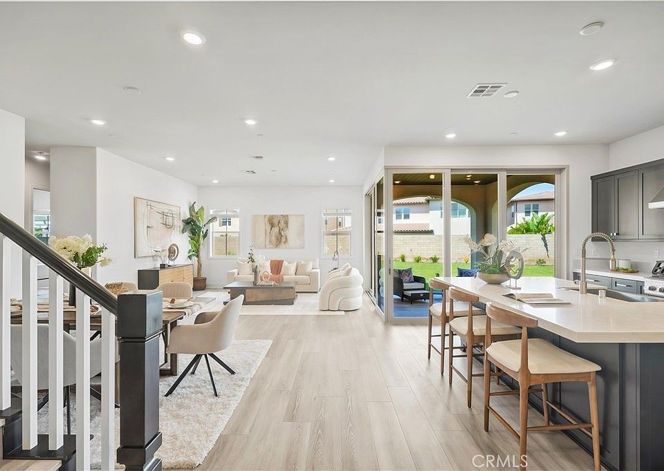 The bright and open living room showcases expansive glass sliding doors that seamlessly connect the indoor and outdoor spaces, creating the ultimate setting for entertaining. Recent upgrades include brand-new flooring and fresh interior paint, giving the home a modern and move-in-ready feel.