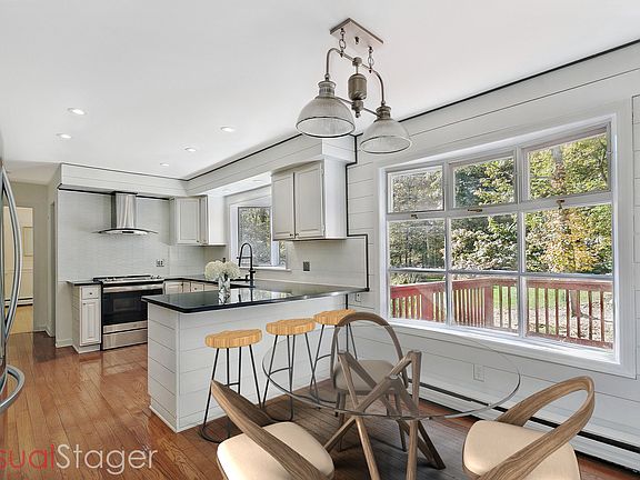 Welcome to 125 Michael Road in desirable North Stamford. Light, bright and airy with a great flow, this 4-bedroom colonial is situated at the end of the cul-de-sac on a serene piece of property. The main level boasts a bright, spacious living room with large windows for beautiful views of garden and brook. The Dining Room has beautiful picture frame wall moldings and gorgeous bay window overlooking the mature plantings. Enormous family room with cathedral ceilings, large windows with tons of natural light during the day and fireplace for those cozy nights. Perfect room for entertaining as it has access to the dining room and eat-in-kitchen with stainless steel appliances, granite counters and tons of cabinet space. The mudroom/pantry allows access to the deck. Updated powder room completes the first level. Upstairs the oversized primary bedroom has an incredible full bath with soaking tub, walk-in shower and dual vanity. Three additional bedrooms and a stunning full bath adds to the perfection. Downstairs you will find a large, finished basement that can be used for a playroom, office, gym or media room, in addition to the laundry room, workshop, storage areas, and access to the 2-car garage. Natures playground at your backdoor, sit and listen to the birds, watch the family of ducks that visit the brook or feed the fish. Walk over the bridge to other side of the yard. Move right in and enjoy! Being sold "As-Is".