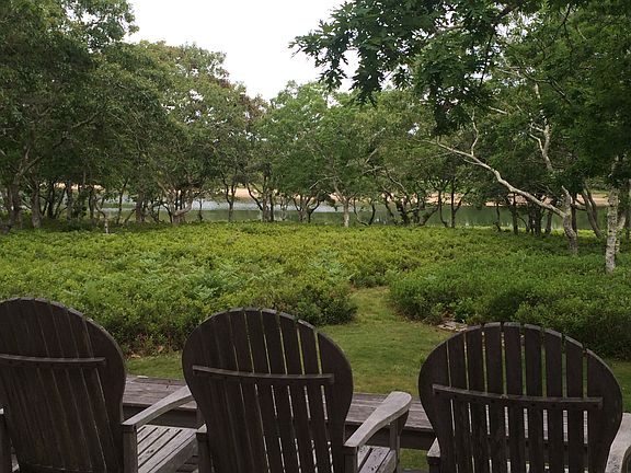 Lovely pond front home finely crafted by South Mountain Company with a perfect blend of warm wood tones and lots of windows and doors allowing the natural light and surrounding woodlands to permeate the home. The house was thoughtfully designed so that all rooms have water views of Middle Cove. A path meanders from the house to the Cove for access to the Tisbury Great Pond for kayaking, canoeing or just sitting by the edge of the water enjoying the natural, peaceful setting. The home abuts Long Point Wildlife Refuge, an over 600-acre Trustees of Reservations conservation property.