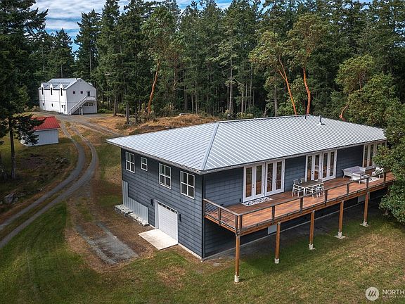 Incredible location near the Orcas ferry landing w/community dock & beach at Double Cove! This stunning turn-key home & property is situated on 6 private, sunny acres & features a gorgeous 3 bed/3.5 bath contemporary home, 1 bed/1bath guest house & delightful studio/barn for additional guest space. Enter on one of the loveliest roads on the Island, Old Farm Road. The artful combination of spaces is perfect for daily living & entertaining. Multiple work spaces include large well-designed shop w/bath, barn/shop & boat house. Finishes include: Radiant heat floor, quartz counters, gourmet kitchen with Sub-Zero & Wolf appliances, custom hardwood & tile floors, shared well. Some furnishings & vintage tractor included. Rock Island Fiber installed.